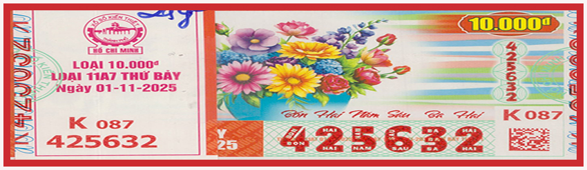 KẾT QUẢ XỔ SỐThứ Bảy, ngày 01-11-2025Loại vé: 6 số, 10.000đ, Kí hiệu: 11A7 | |