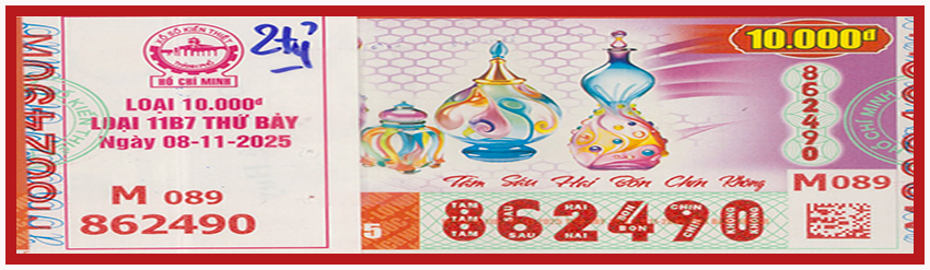 KẾT QUẢ XỔ SỐThứ Bảy, ngày 8-11-2025Loại vé: 6 số, 10.000đ, Kí hiệu: 11B7 | |