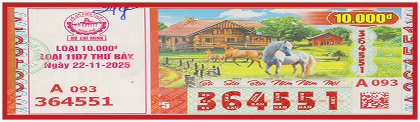 KẾT QUẢ XỔ SỐThứ Bảy, ngày 22-11-2025Loại vé: 6 số, 10.000đ, Kí hiệu: 11D7 | |