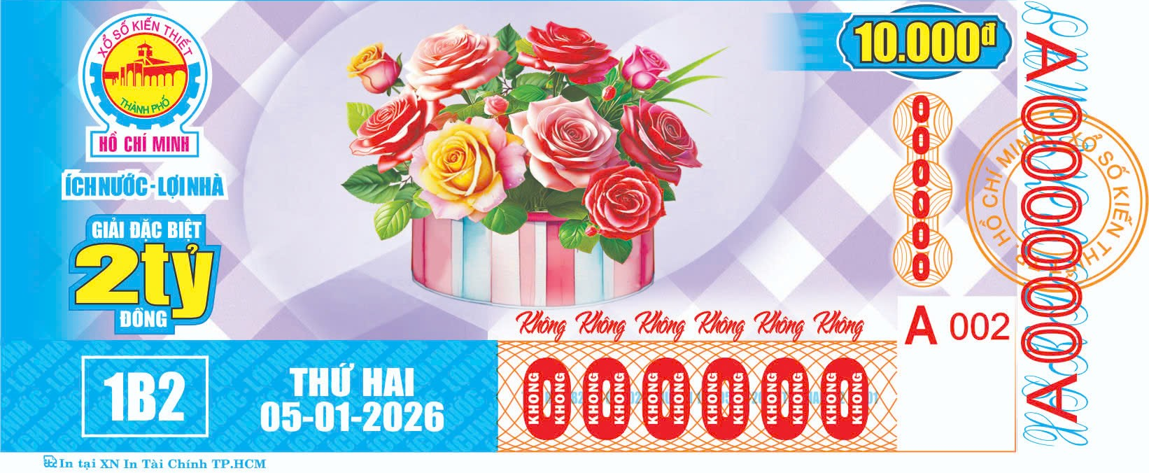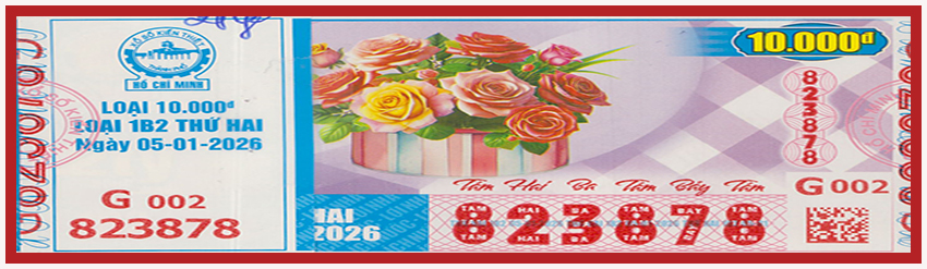 KẾT QUẢ XỔ SỐThứ Hai, ngày 05-01-2026Loại vé: 6 số, 10.000đ, Kí hiệu: 1B2 | |