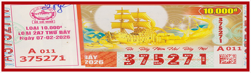 KẾT QUẢ XỔ SỐThứ Bảy, ngày 7-02-2026Loại vé: 6 số, 10.000đ, Kí hiệu: 2A7 | |