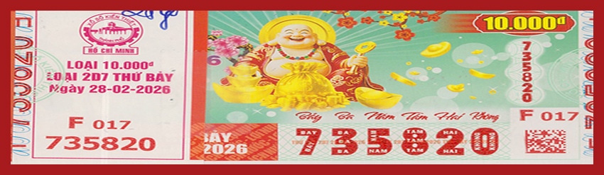 KẾT QUẢ XỔ SỐThứ Bảy, ngày 28-02-2026Loại vé: 6 số, 10.000đ, Kí hiệu: 2D7 | |