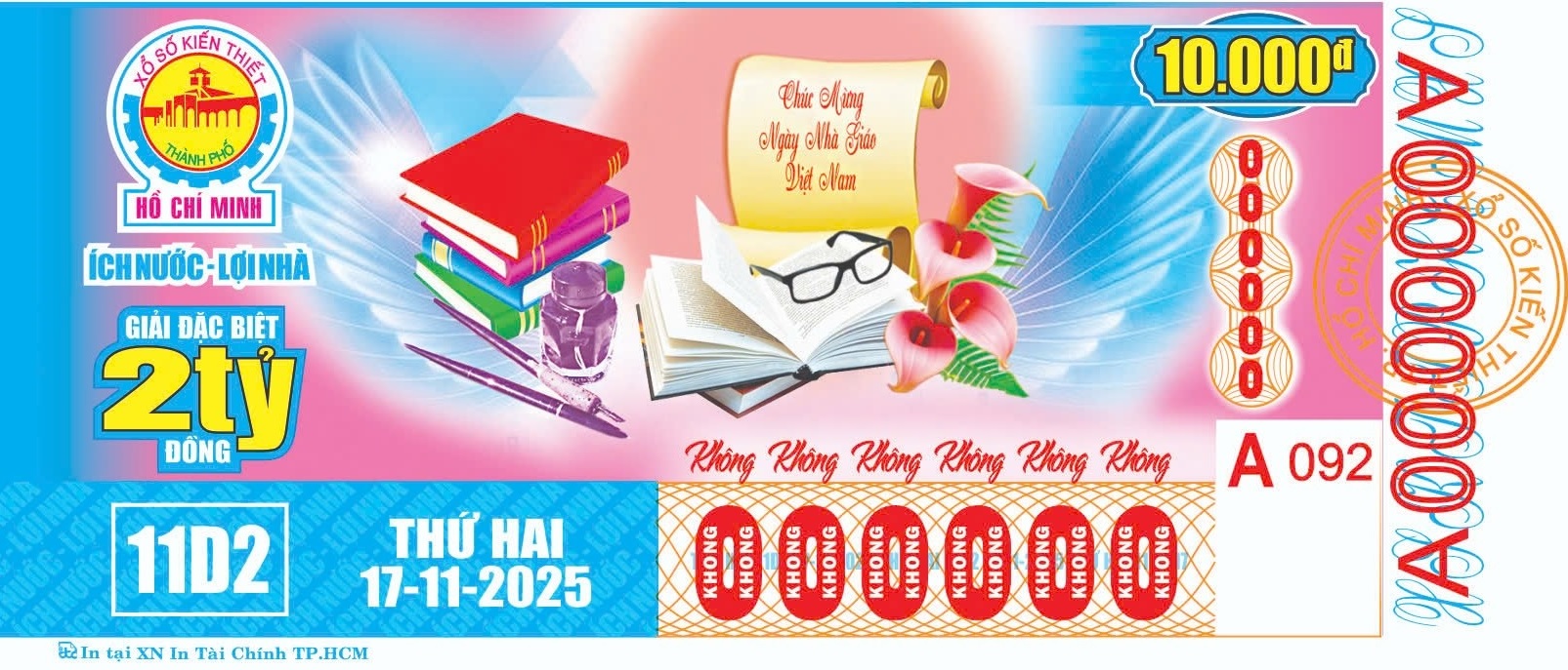 KẾT QUẢ XỔ SỐThứ Hai, ngày 17-11-2025Loại vé: 6 số, 10.000đ, Kí hiệu: 11D2 | |