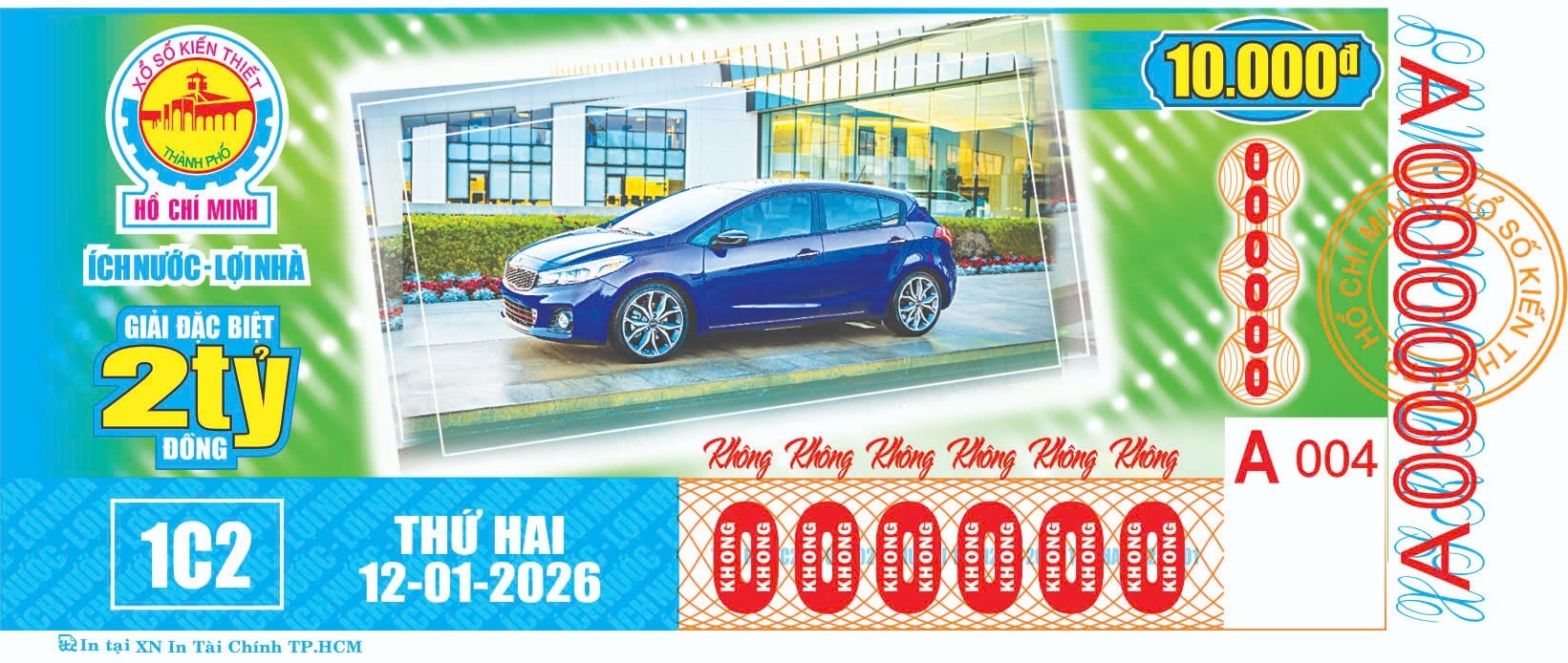 KẾT QUẢ XỔ SỐThứ Hai, ngày 12-01-2026Loại vé: 6 số, 10.000đ, Kí hiệu: 1C2 | |