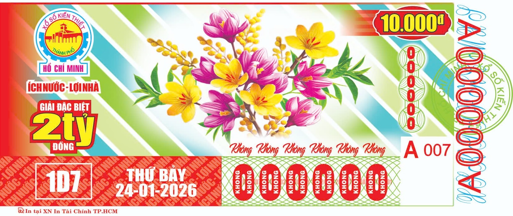 KẾT QUẢ XỔ SỐThứ Bảy, ngày 24-01-2026Loại vé: 6 số, 10.000đ, Kí hiệu: 1D7 | |