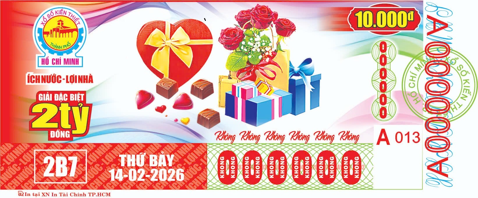 KẾT QUẢ XỔ SỐThứ Bảy, ngày 14-02-2026Loại vé: 6 số, 10.000đ, Kí hiệu: 2B7 | |