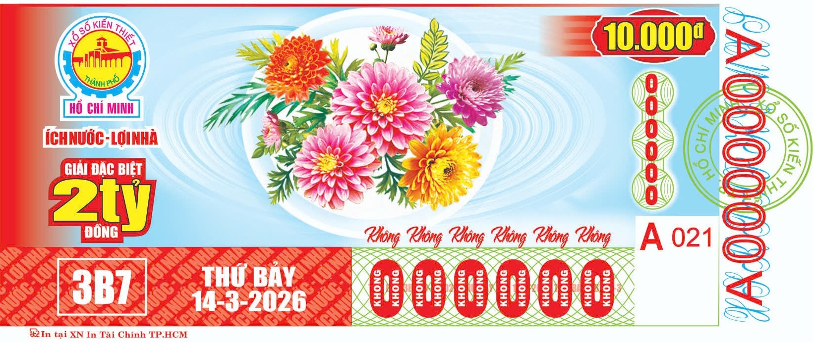 KẾT QUẢ XỔ SỐThứ Bảy, ngày 7-03-2026Loại vé: 6 số, 10.000đ, Kí hiệu: 3A7 | |
