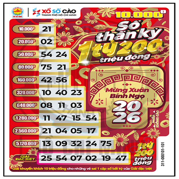 KẾT QUẢ XỔ SỐThứ Bảy, ngày 31-01-2026Loại vé: 6 số, 10.000đ, Kí hiệu: 1E7 | |