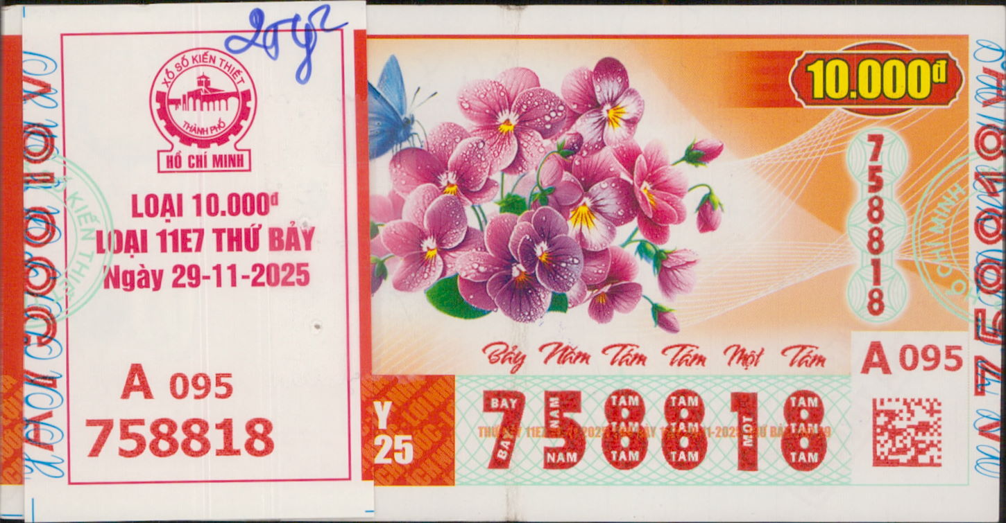 - Kỳ xổ 11E7, mở ngày 29/11/2025 quý khách tại các địa phương sau đã trúng giải đặc biệt : phường Biên Hòa, phường Trấn Biên - Đồng Nai; phường Dĩ An, phường Thủ Đức, phường Tân Đông Hiệp - TP. Hồ Chí Minh.