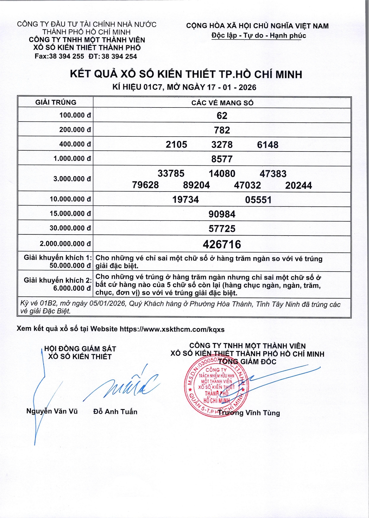 Kết Quả Quay Số Mở Thưởng Ngày 17/01/2026 admin Hình ảnh Đính kèm 2026_01_17_1_.pdf pdf 928.52 KB 17/01/2026 admin Tải xuống Xem trước Zing Linkhay Twitter Google Facebook Yahoo Save Print Bài đăng khác Kết Quả Quay Số Mở Thưởng Ngày 12/01/2026 Kết Quả Quay Số Mở Thưởng Ngày 10/01/2026 Công ty Xổ số kiến thiết TP.Hồ Chí Minh cùng Hội Bảo Trợ Bệnh Nhân Nghèo Thành phố triển khai chương trình “Mổ mắt miễn phí đem lại ánh sáng cho bệnh nhân nghèo”