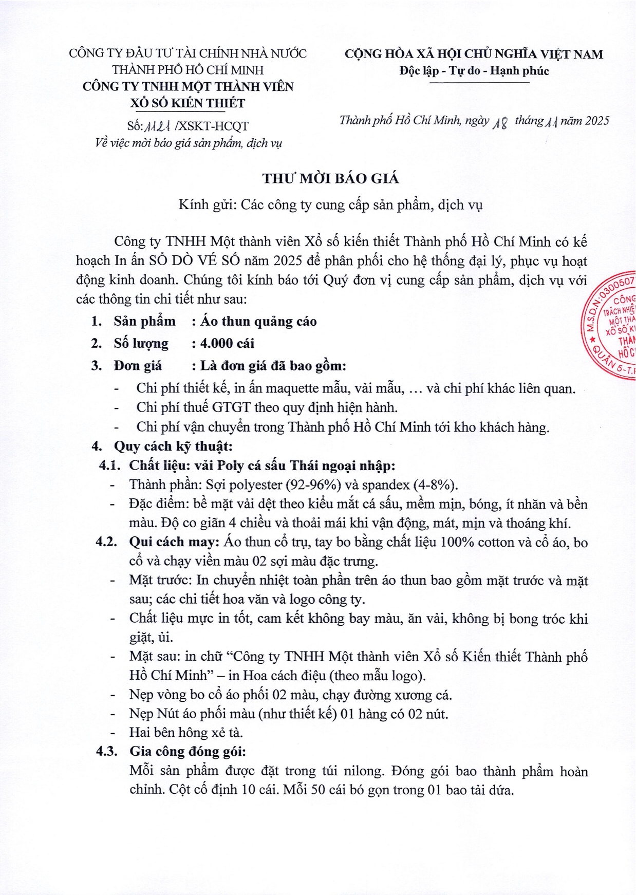 Thư mời báo giá gói cung cấp áo thun quảng cáo admin Zing Linkhay Twitter Google Facebook Yahoo Save Print Bài đăng khác Thư mời báo giá gói cung cấp sổ dò vé số Xổ số cào Thành phố Hồ Chí Minh: 4 vé trúng thưởng đặc biệt lộ diện Xổ số cào biết kết quả ngay với giải thưởng đặc biệt 1 tỷ đồng chính thức ra mắt